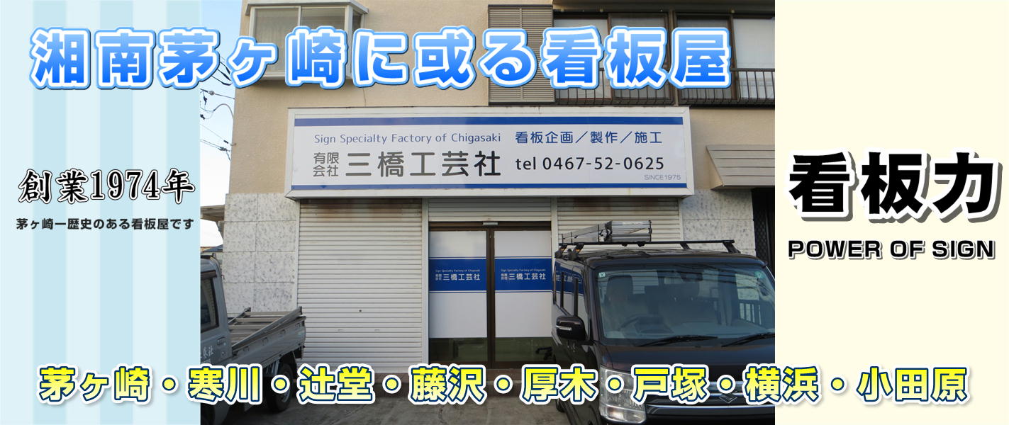 当社は創業1974年の看板屋です。主に茅ヶ崎・辻堂・藤沢・平塚・寒川・厚木・横浜・小田原などを中心に営業しております。