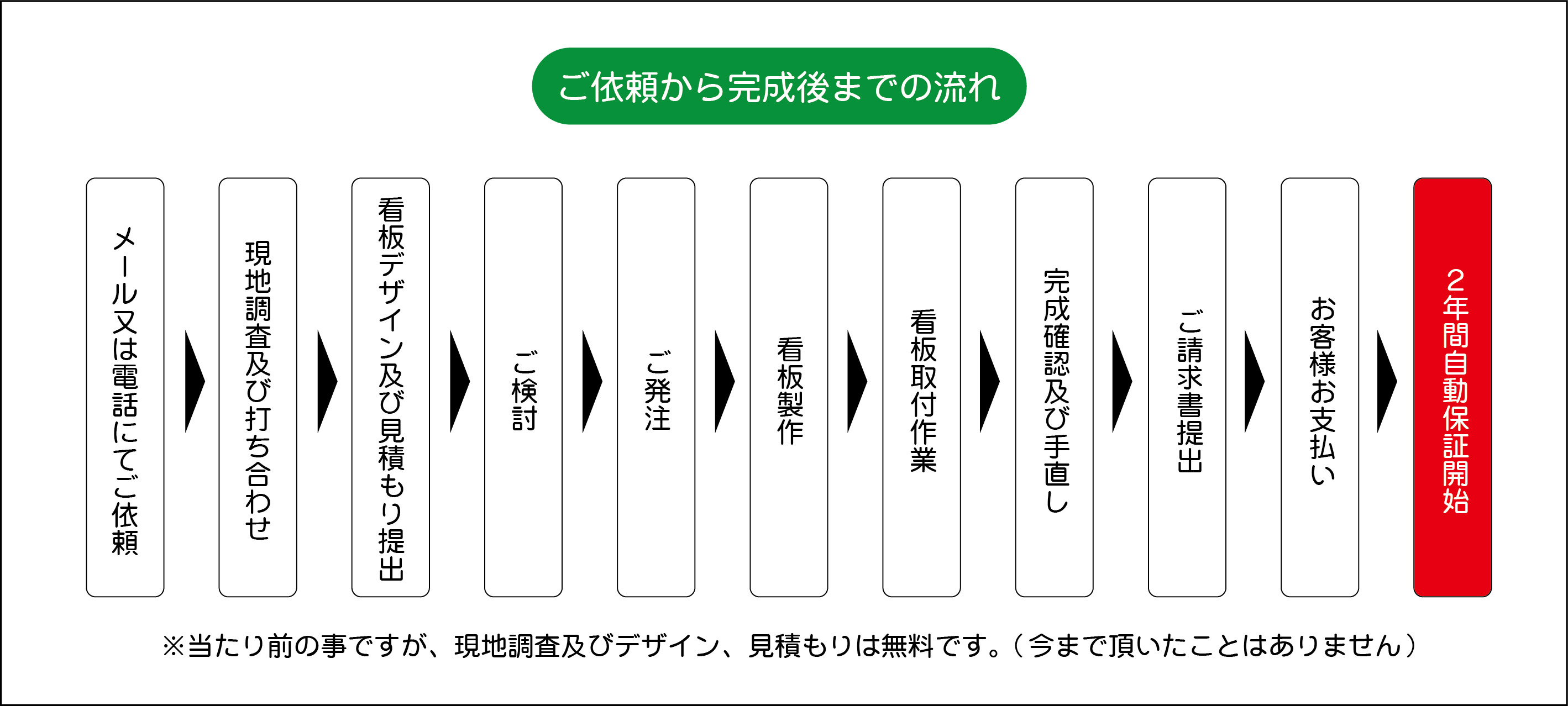 ※当社は1974年の創業以来ほぼこの流れで仕事をしております。ご不明な点がございましらお気軽にご相談下さい。